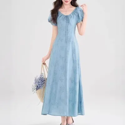 ワンピース パフスリーブ 花柄 ロング 夏服 気質 リゾートスタイル 高級 新作 フレンチスタイル 高級感 カジュアルドレス