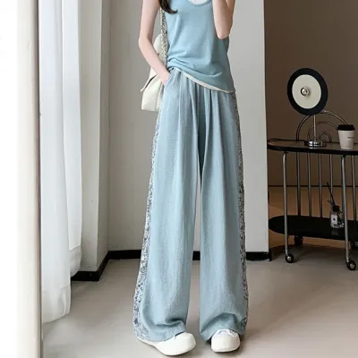 【SEO対応】ゆったりカジュアル レーススプリットストレートパンツ