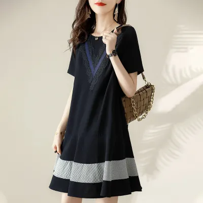 ハウンドトゥース ラウンドネック ドッキング フレアドレス ワンピース