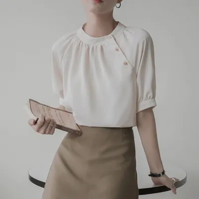 ボタン付きバンドカラーブラウス