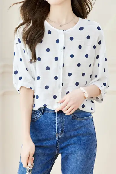 ポルカドットプリントクルーネックTシャツ シャツ・ブラウス