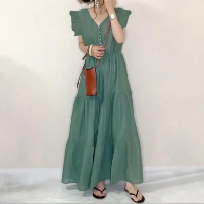 ワンピース 切り替え エレガント スリムに見える Vネック 気質 新作 日本風 カジュアルドレス