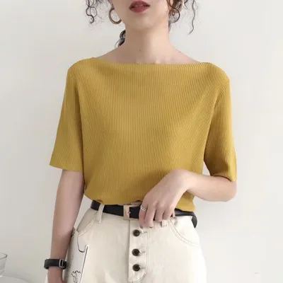 人気沸騰!6colour韓国系カジュアルシンプルボートネックニットTシャツ