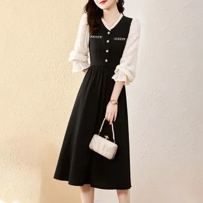 カジュアルでスリム見え 小規模ブランドデザイン キャミソールワンピース ブラックエレガントロングドレス