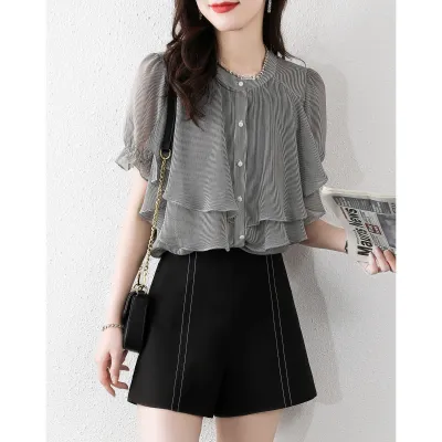 フリルデザインの多機能ブラウス
