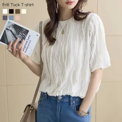 『今売れてます!』 無地 ラウンドネック ギャザー 半袖 長袖 ファッション Tシャツ